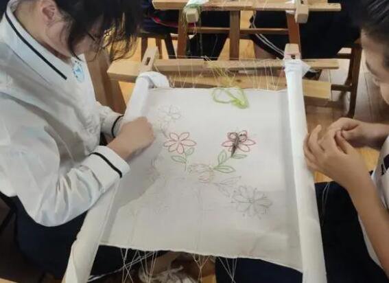 當天上午,威海景義外國語校園部分師生到三裏河中學體會其傳統(tǒng)文化愛好小組活動。三裏河中學邀請非遺傳承人進校園授課,教授魯繡、衍紙、烙畫、剪紙、漢服等多項課程,旨在讓學生傳承傳統(tǒng)文化職業(yè)技能。